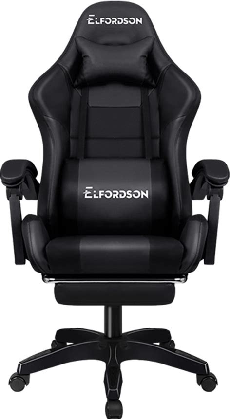 ELFORDSON Black Reclining Adjustable Gaming Chair - Faux Leather